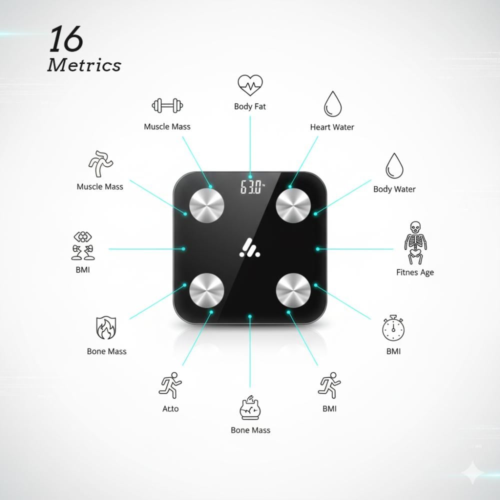 مثالي لمتابعة الوزن وتحليل مكونات الجسم مثل الدهون والعضلات والماء، مناسب للاستخدام المنزلي أو الرياضي.
