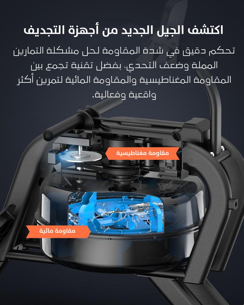 - نظام مقاومة مزدوج (مائي ومغناطيسي): يوفر مزيجًا مثاليًا من المقاومة المائية التي تحاكي تجربة التجديف الطبيعية، مع مقاومة مغناطيسية قابلة للتعديل لتخصيص شدة التمرين.
