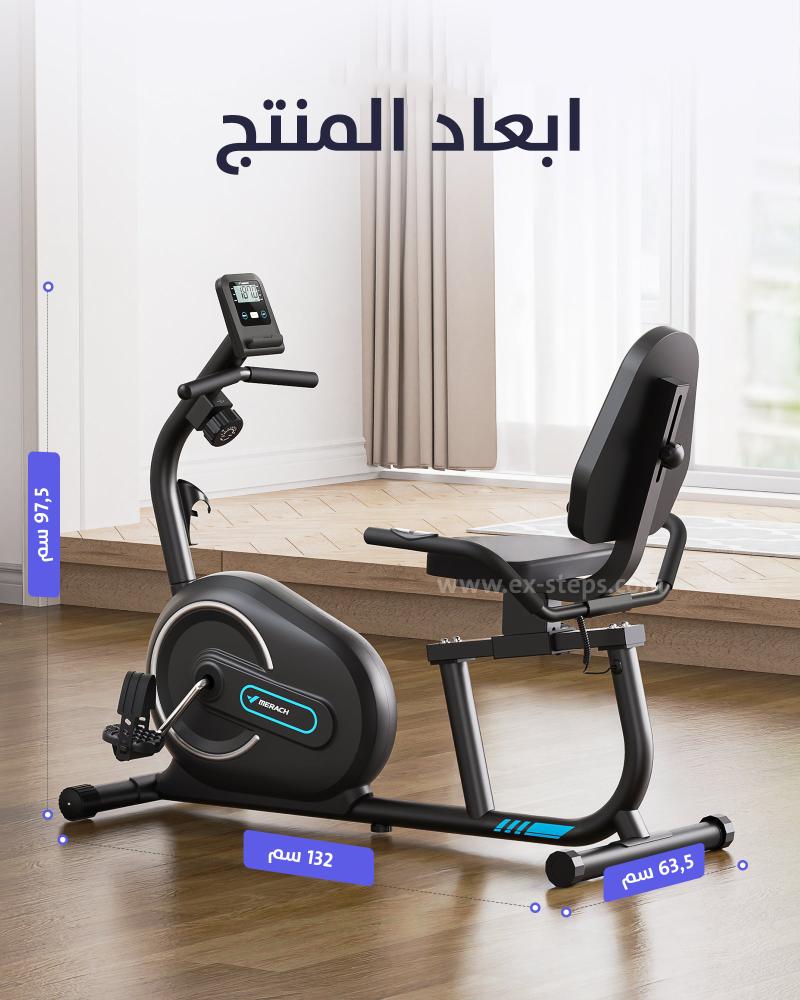 - شاشة ذكية مدمجة: تعرض الوقت، السرعة، المسافة، السعرات، RPM، وعدد الدورات.